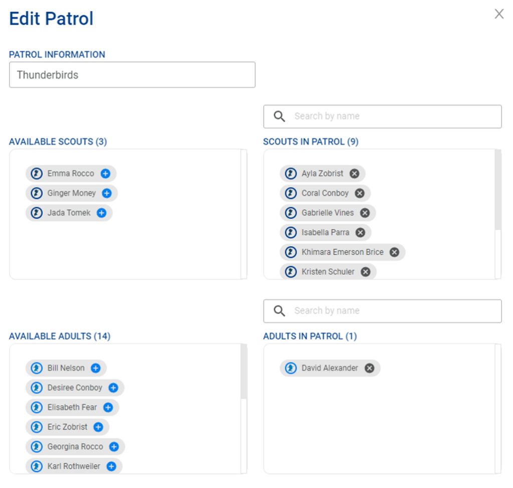 In Scoutbook Plus, a unit can actively change functional positions for adults in their unit. For example, a Key 3 member may now change the unit’s Unit Advancement Chair in Scoutbook Plus. Previously, this action could only be performed in My.Scouting. Note: members will still be redirected to my.scouting.org to change registered positions.
